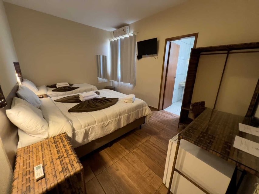 Hotel Rancho XV features an outdoor swimming pool, garden, a restaurant and bar in Itapeva. Featuring room service, this property also provides guests with a childrens playground. The accommodation provides a 24-hour front desk, a shuttle service, a kids club and free WiFi throughout the property. At the hotel, each room has a desk, a flat-screen TV, a private bathroom, bed linen and towels. The rooms are equipped with a coffee machine, while selected rooms are fitted with a balcony and others also offer mountain views. Guest rooms include a wardrobe. You can play billiards at Hotel Rancho XV. A damage deposit of BRL 100 is required on arrival. This will be collected as a cash payment. You should be reimbursed on check-out. Your deposit will be refunded in full in cash, subject to an inspection of the property. Disclaimer notification: Amenities are subject to availability and may be chargeable as per the hotel policy.