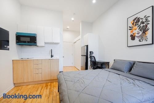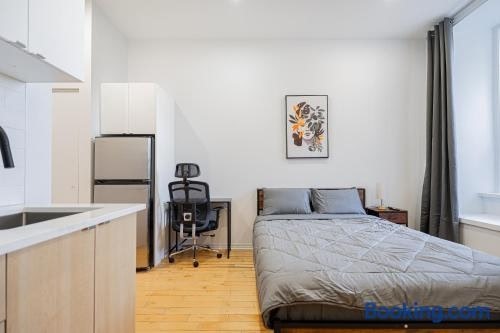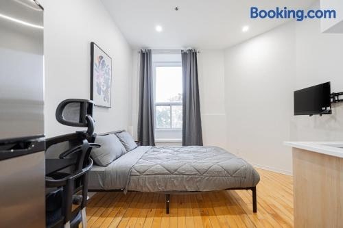 Weekly cozy Studio For 2 Guest With Free parking nằm ở Montréal, cách Đại học Quebec, Montreal UQAM 3.4 km, Quảng trường Place Jacques Cartier 3.6 km và Bảo tàng nghệ thuật đương đại 4 km. Chỗ nghỉ điều hòa này cách Ga metro Berri Uqam 3.
