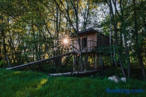 Nhìn ra khu vườn, Treehouse Tučapy cung cấp chỗ nghỉ có khu vườn, sân hiên và tiện nghi BBQ, cách Quảng trường Přemysl Otakar II Square khoảng 48 km.