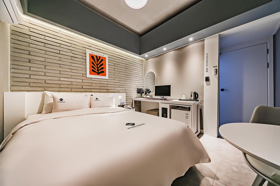 Pohang Sangdodong Vinn Haus provides flawless service and all the necessary facilities for visitors.Stay connected with your associates, as complimentary Wi-Fi is available during your entire visit.When arriving by car, take advantage of the motel's convenient on-site parking facilities.In order to ensure the utmost level of relaxation, the guestrooms feature an inviting design and are equipped with all basic necessities, creating a delightful stay experience. To ensure your satisfaction, certain rooms in the motel come fitted with air conditioning for a more pleasant stay. Selected rooms offer in-room amusement like television as a source of entertainment for guests to enjoy.Rest assured, quenching your thirst is not a concern with a refrigerator available in select accommodations. You'll be pleased to know that select guest bathrooms offer bathroom amenities such as a hair dryer, ensuring a comfortable stay.