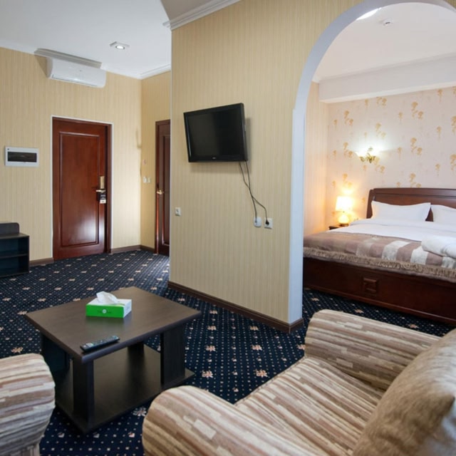 Located in Khabarovsk, the hotel is 5 km from the city centre. It features a 24-hour reception and free Wi-Fi. A sauna, massage service, steam bath and indoor swimming pool are available onsite. Decorated in classic style, rooms at Europa Hotel are air-conditioned, and include a flat-screen TV and fridge. Private bathrooms are fitted with a shower and free toiletries. Guests can enjoy European cuisine in the on-site restaurant and variety of cafés and shops is 10 minutes’ walk away. The nearest bus stop, providing access around the city, is 50 metres from the hotel. Khabarovsk Train Station is 5 km from Europa Hotel. A shuttle to Khabarovsk Airport (10 km) is available on request. Disclaimer notification: Amenities are subject to availability and may be chargeable as per the hotel policy.