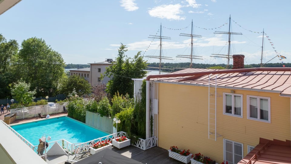 Located next to the Pommern Museum Ship in Mariehamn, this hotel features indoor and outdoor pools, a sauna and a garden terrace. A well-equipped gym is available for guests free of charge.