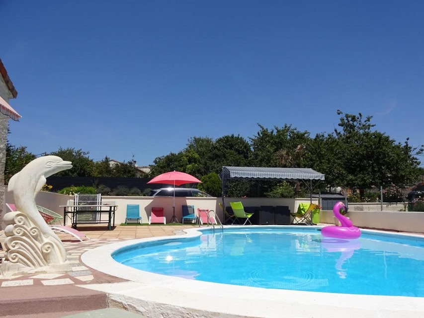 Aux Orangers có hồ bơi ngoài trời theo mùa, khu vườn, phòng chờ chung và sân hiên ở Luxé. Chỗ nghỉ này cung cấp bếp chung và Wi-Fi miễn phí. Các căn ở guest house được trang bị máy pha cà phê.